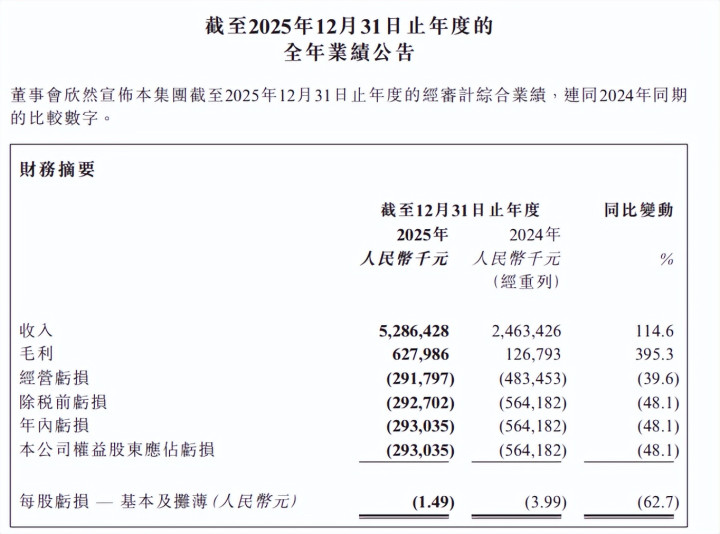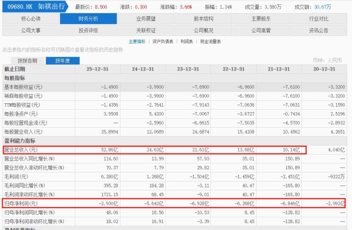 2025年全年,如祺出行总收入约为52.86亿元,与上年同期的24.63亿元相比,增长幅度高达114.6%,翻了不止一倍。与此同时,该公司的净亏损也明显减少了,其年内亏损总额从2024年的5.64亿元收窄至2.93亿元,减少了将近一半。