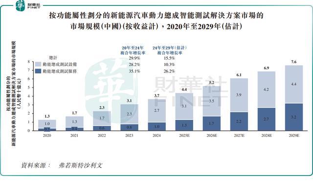 华依科技扮演的正是“卖水人”角色。随着汽车动力总成行业从燃油发动机转向“三电”(电池、电驱、电控)系统,以及L3级自动驾驶法规逐步落地,整车厂对测试验证的专业度和权威性需求持续增长。这为华依科技铺开了一条宽阔的赛道:招股书引用的数据显示,中国新能源汽车动力总成测试市场规模2024年至2029年的复合年增长率预计高达15.5%。