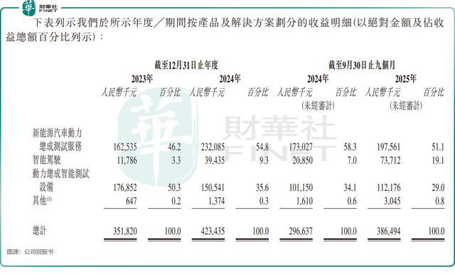 (1)基本盘是新能源汽车动力总成测试服务,2025年前三季贡献了51.1%的收入,这是它作为行业龙头的根基;